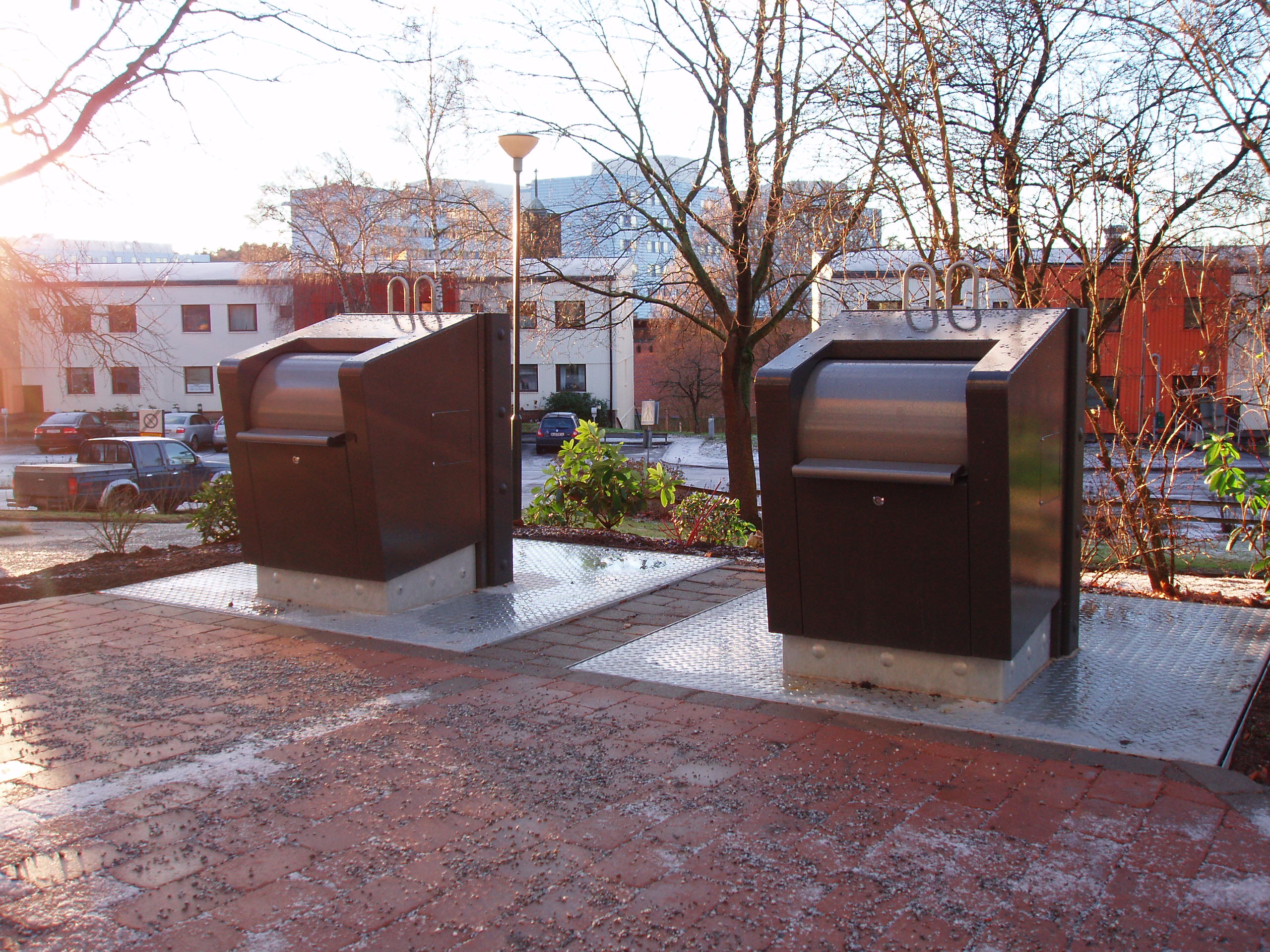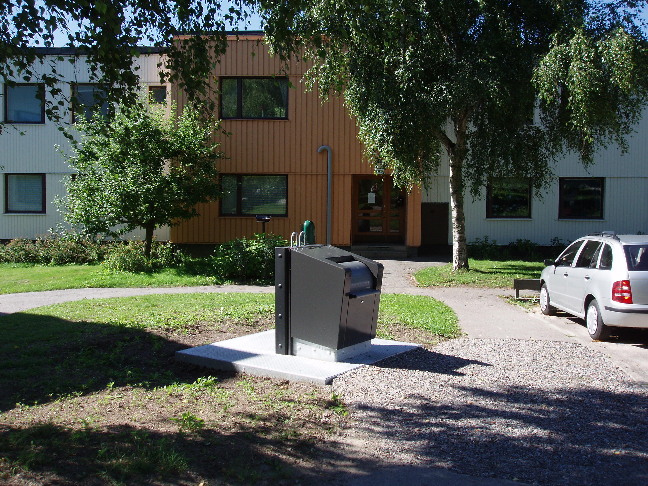 Underjordsbehållaren är brandsäker, skadedjurssäker och användarvänlig eftersom inkastet är anpassat för rullstolsburna personer.