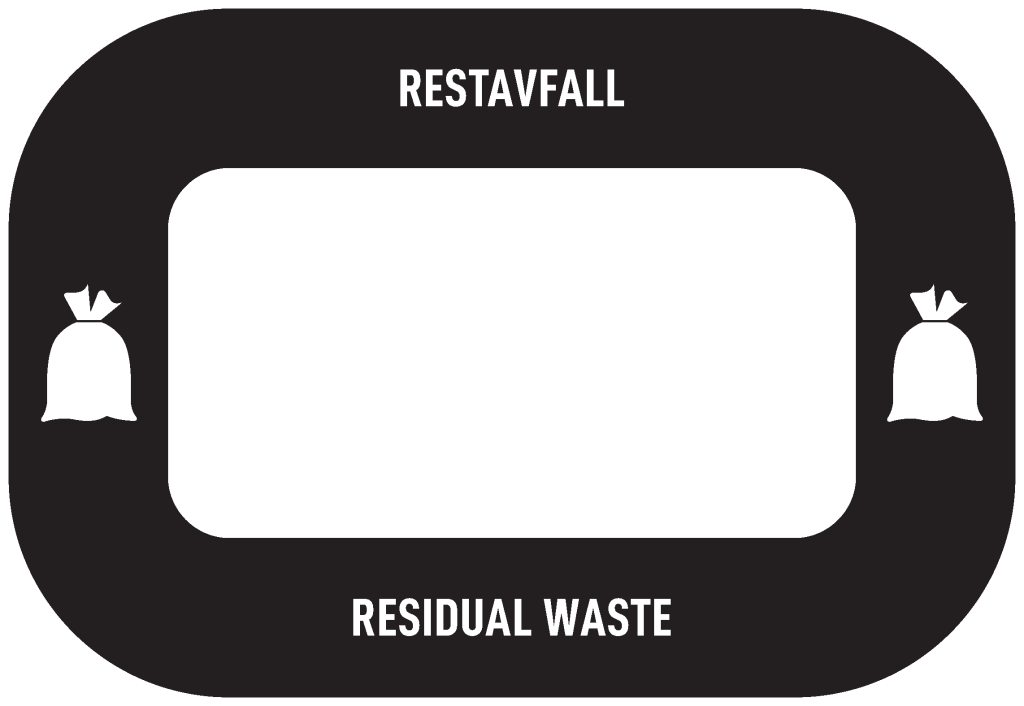 Dekal med texten “Restavfall”, anpassad för källsorteringsmöbeln Royal C Eco.